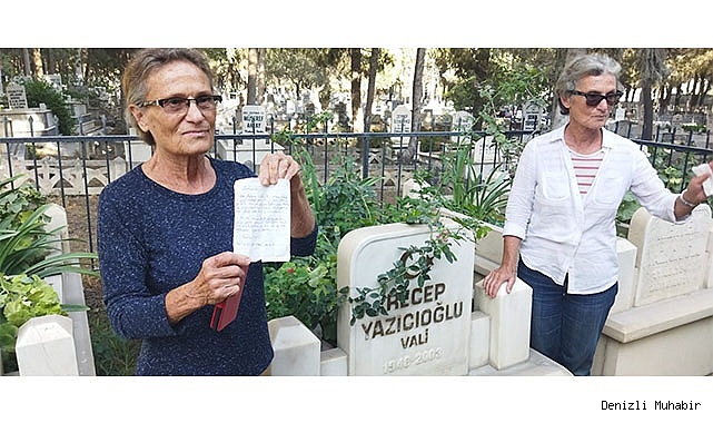 Merhum Vali Recep Yazıcıoğlu'nun kardeşi emekli eğitimci Leyla İleri, her ziyaretinde kabri başında çeşitli not ve mektuplar bulduğunu söyledi. İleri, geçtiğimiz hafta Vali Yazıcıoğlu'nun kabri başında bırakılan son notun ise Yazıcıoğlu vefat ettiğinde yeni doğan bir hukuk öğrencisine ait olduğunu belirtti.