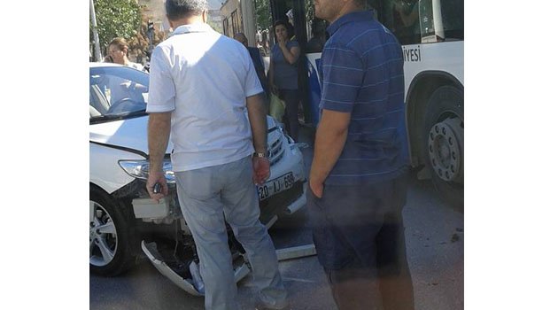 Denizli'nin Pamukkale İlçesi, Ulus Caddesinden Çamlık istikametine giden 20 AJ 698 plakalı otomobil, içinde yaklaşık olarak 50 yolcunun bulunduğu 20 numaralı Denizli Büyükşehir Belediye Otobüsü, çarpışması sonucu kazada 1 kişi hafif şekilde yaralandı.