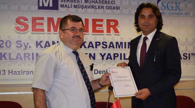 Seminerde SGK Denizli İl Müdürü Abdullah Mersin ve Gelir İdaresi Grup Müdürü Yusuf Malkoç yaptıkları sunumla, mali müşavir ve muhasebecilere kanunla ilgili bilgiler verdi. Sunumda, mali müşavir ve muhasebecilerin, mükelleflerini kanunla ilgili bilgilendirmeleri ve bu yapılandırmadan yararlanmalarını sağlamalarının önemine işaret edildi.