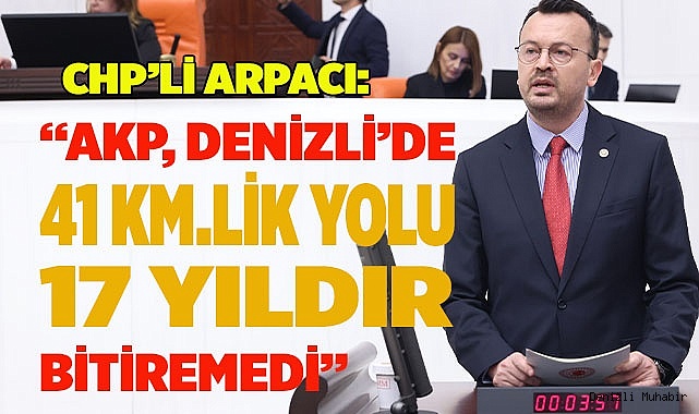 Cumhuriyet Halk Partisi (CHP) Denizli Milletvekili Şeref Arpacı, Denizli’de yapımı tamamlanamayan 41 kilometrelik Denizli-Acıpayam Ayrımı-Kale yolu ve 37,7 kilometrelik Çivril-Işıklı-Dinar yolunu gündeme taşıdı. Arpacı, “Her fırsatta yaptıkları yolları dile getiren AKP iktidarı Denizli’de biri 41 diğeri 37 kilometrelik iki yolu 17 yıldır bitiremiyor. Üstelik yollara bu yılki ayrılan ödenek de sadece bin lira” dedi.