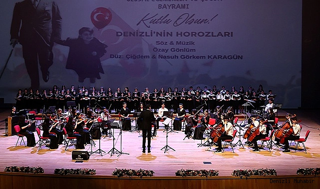 Denizli Büyükşehir Belediye Konservatuarı Çocuk Korosu ve Orkestrası’nın muhteşem performansına tanıklık eden davetliler de hep birlikte şarkı ve marşlara eşlik ederek 23Nisan Ulusal Egemenlik ve Çocuk Bayramı coşkusunu hep birlikte yaşadı.