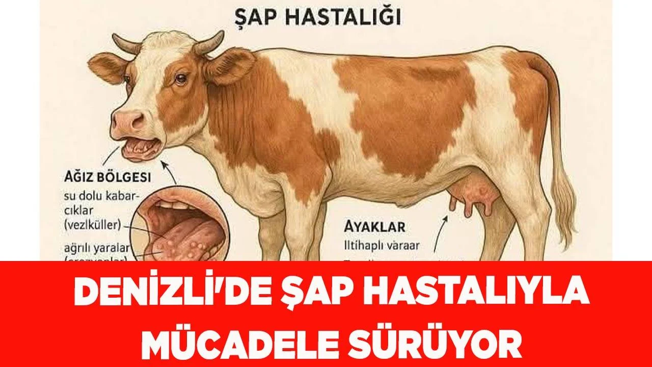 Türkiye genelinde sayısı giderek artan şap hastalığı Denizli’de de yoğun şekilde görülmeye devam ediyor. Tüm ilçelerde hayvan sevkiyatı yasaklanırken, ilçelerde de yoğun bir ilaçlama ve dezenfekte çalışması yürütülüyor. İl Tarım ve Orman Müdürü Mustafa Nevzat Zayim’de aşılama çalışmalarıyla ve yol kontrollerinin artacağını duyuruldu.