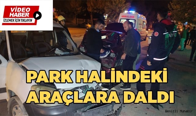Denizli’de sürücüsünün direksiyon hakimiyetini kaybettiği araç, park halindeki araçların arasına daldı. Kaza sonucu başından darbe alan araç sürücüsünün durumu ağır.