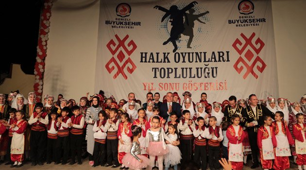 Türk kültürünün tanıtılması ve yaşatılması için başta ücretsiz kurslar olmak üzere birçok etkinlik düzenleyen Denizli Büyükşehir Belediyesi Halk Oyunları Topluluğu, Ziya Tıkıroğlu Açık Hava Tiyatrosu’nda yılsonu gösterisi düzenledi. Etkinliğe Denizli Büyükşehir Belediye Başkanı Osman Zolan, Büyükşehir Belediyesi Genel Sekreter Yardımcısı Mustafa Gökoğlan, Kültür, Turizm ve Tanıtım Dairesi Başkanı Hüdaverdi Otaklı ve çok sayıda vatandaş katıldı. Denizli Büyükşehir Belediyesi Halk Oyunları Topluluğu’ndan 300 kursiyer Türkiye’nin dört bir yöresinden oynadığı halk oyunları ile izleyenlerden büyük alkış topladı. Zeybek ile başlayan gecede Tokat, Artvin, Diyarbakır, Silifke, Teke yöresinden halk oyunları sergilendi. Etkinlikte ayrıca aşuk-maşuk oyunları ile minikler ve yıldızlar bale grubu gösterisi yapıldı.