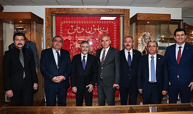 Başkan Zolan belediye binası önünde karşıladığı Bakan Nebati’ye Büyükşehir Belediyesi Kültür ve Sosyal İşler Dairesi Başkanlığı'nda sergilenen ünlü Yatağan palası, Büyükşehir Belediyesi Kültür Yayınlarından oluşan eserleri ve Denizli Sancağını anlattı.