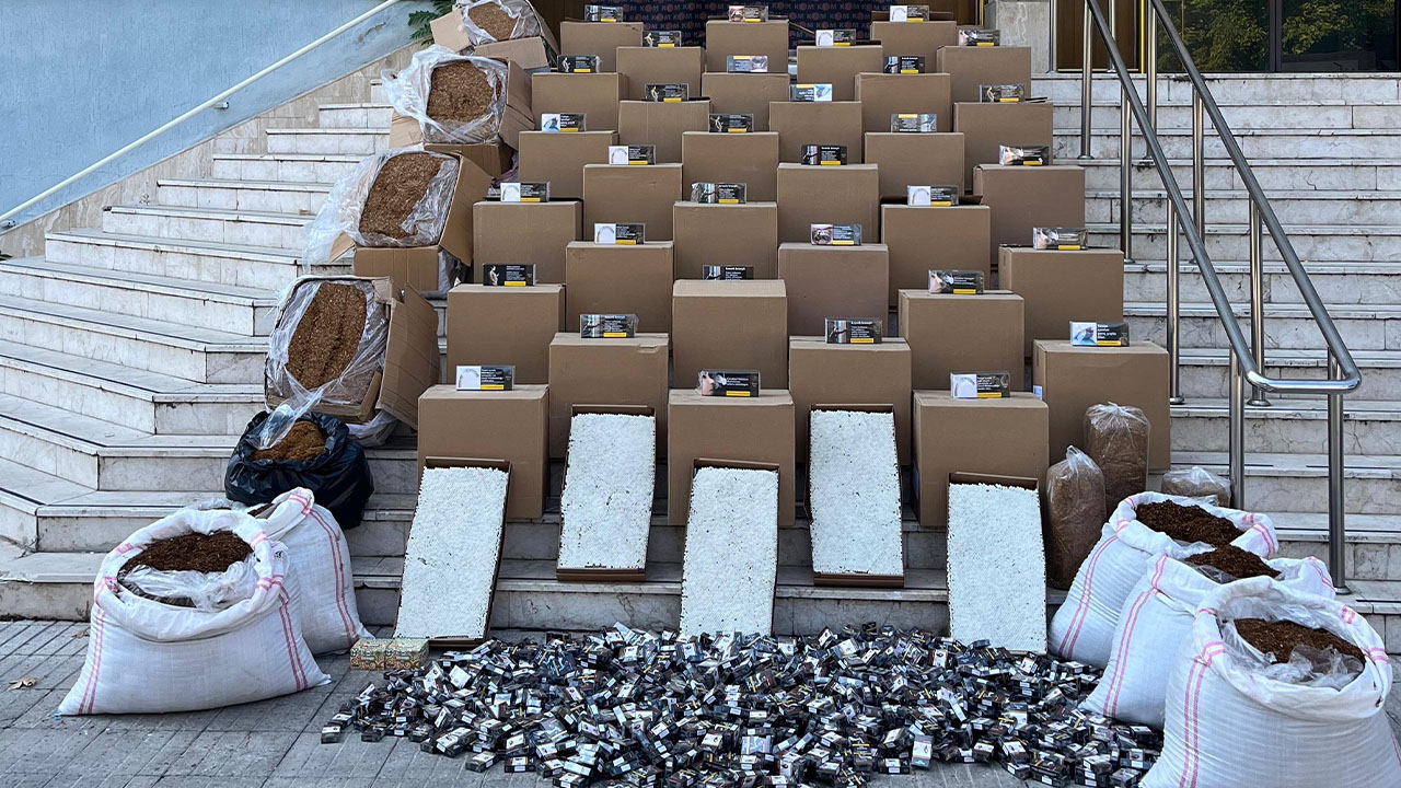 Eş zamanlı gerçekleştirilen operasyonda bir şüpheli yakalanırken, 25 bin adet sarma sigara, 226 kilogram tütün, 1.000 paket sigara, 330 bin sahte bandrollü boş makaron,1.768 sigara sarma kağıdı ele geçirildi.