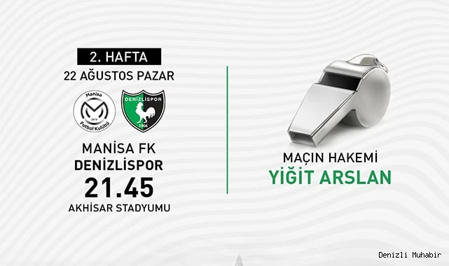 (İHA) - TFF 1. Lig'de 2. haftanın hakemleri açıklandı. Manisa FK-Denizlispor karşılaşmasını Yiğit Arslan yönetecek.