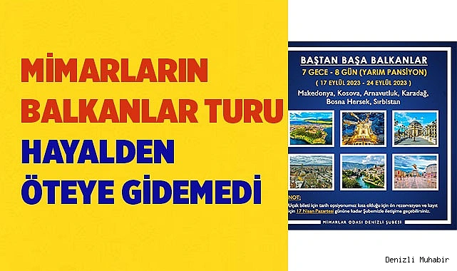 17 – 24 Eylül 2023 tarihileri arasında 1 haftalık Balkanlar turu düzenlenen İzmir merkezli tur firması, Denizli Mimarlar Odası üyelerine ulaştı.