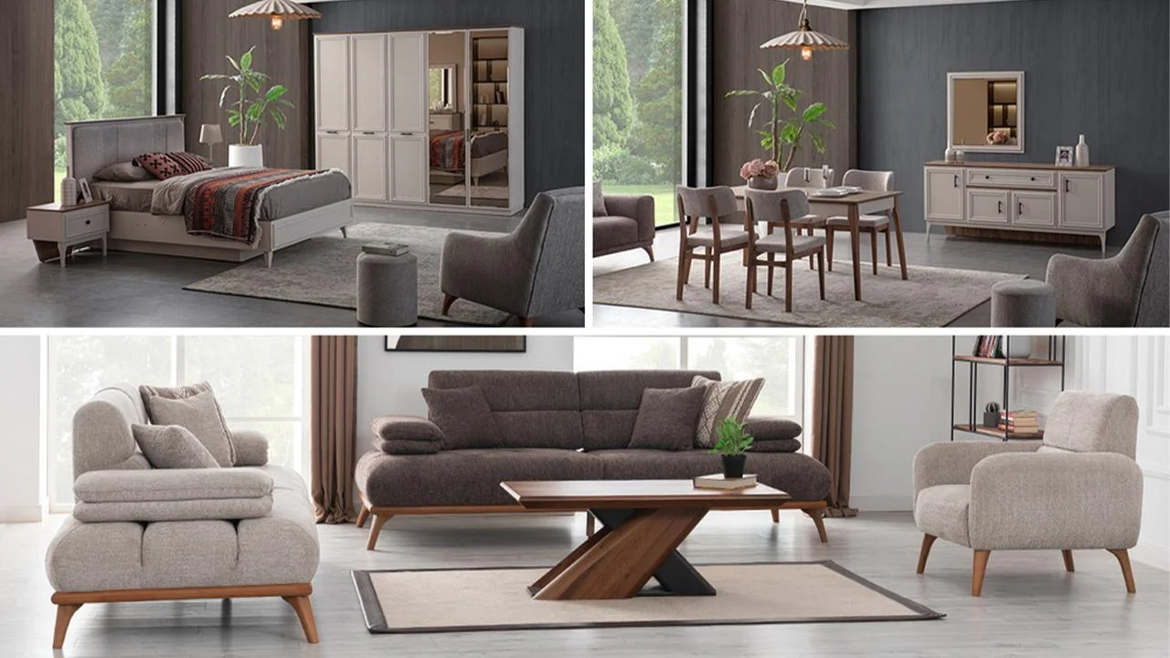 Paket içeriklerinde yer alan tüm mobilyalar birbiriyle görsel uyum sağlayacak şekilde seçilir. Eve yerleştirildiğinde bütünlük hissi yaratan bu takımlar, dekorasyon konusunda kararsız kalan çiftler için büyük bir rahatlık sunar. Fonksiyonel detaylara sahip tasarımlar sayesinde hem şık hem de kullanışlı alanlar oluşturulabilir.
