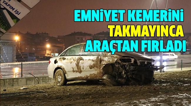Otomobil, refüjdeki uyarı levhasına çarparak durabildi.Emniyet kemerini arkadan bağladığı için araçtan fırlayan sürücüye ihbar üzerine olay yerine gelen sağlık ekipleri ilk müdahaleyi yaptı.