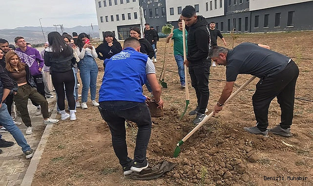 ‘Yüz Fidan Dikelim’ etkinliğinde fidanlar toprakla buluştuktan sonra Serinhisar MYO Müdürü Dr. Öğr. Üyesi Mehmet Ali Ekinci katılımcılara okulu tanıttı.