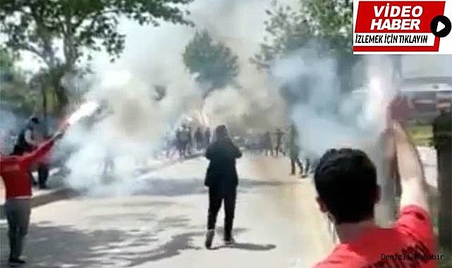 Manisa'nın Turgutlu ilçesinde, Turgutluspor'un Serik Belediyespor ile müsabaka öncesinde takım otobüsünü karşılayan genç taraftarın elinde sis bombası patladı. O anlar başka bir taraftarın cep telefonu ile çektiği görüntülere yansıdı.