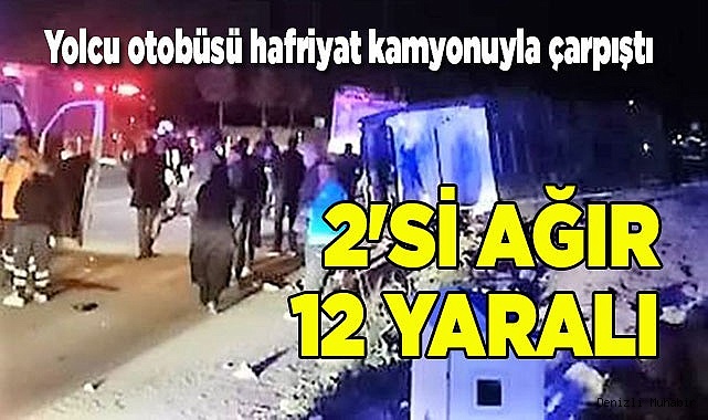 Kaza, Honaz ilçesine bağlı Kocabaş Mahallesi’nde saat 05.00 sıralarında meydana geldi. Edinilen bilgiye göre; Kayseri-İzmir seferini yapan Celal K. (35) kullandığı 43 KB 716 plakalı Öz Elbistan firmasına ait yolcu otobüsü ile Ferdi B. yönetimindeki 34 EVC 757 plakalı hafriyat kamyonuyla çarpıştı.
